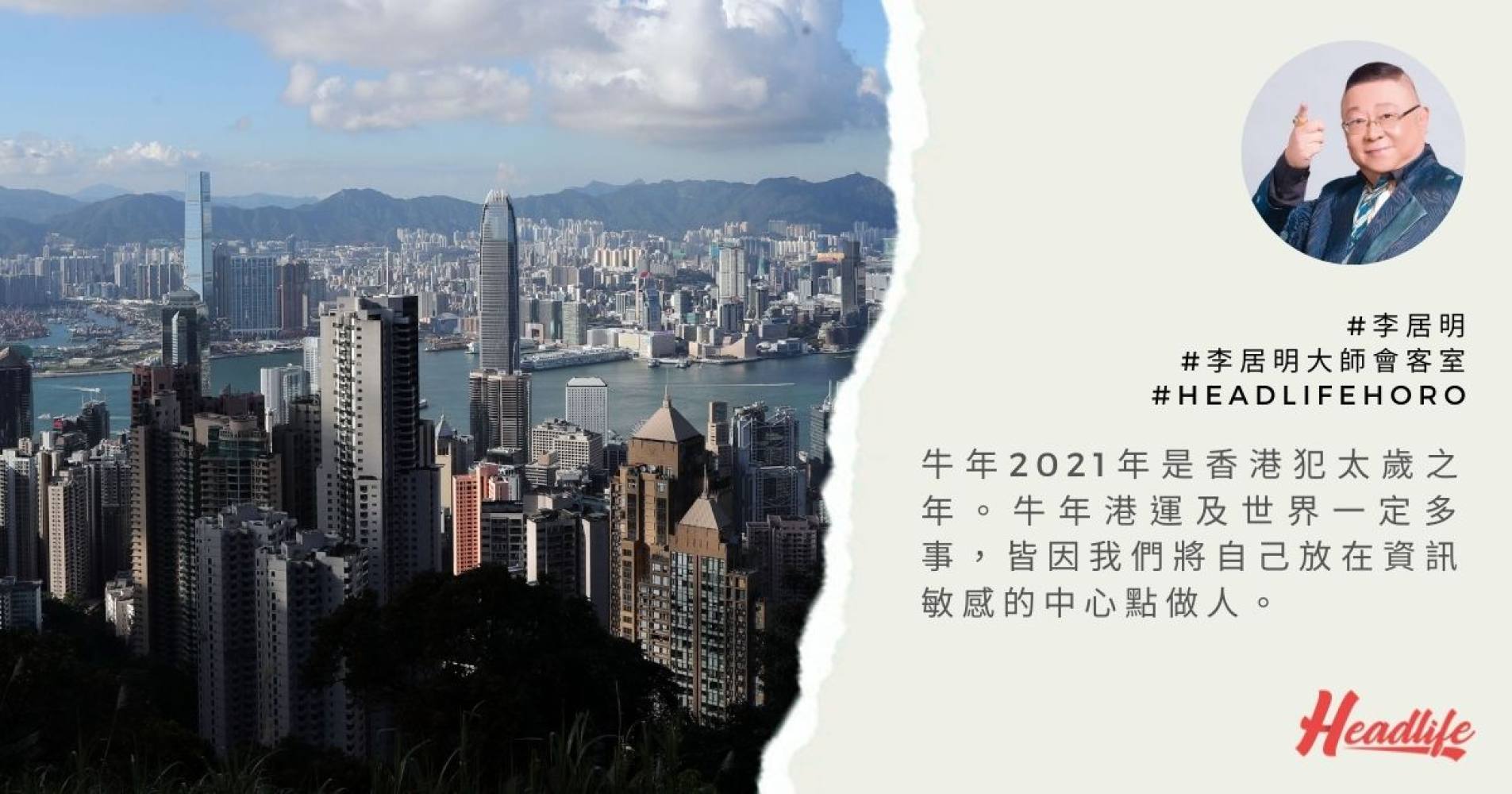 因此,牛年2021年是香港犯太歲之年。1997年誕生的香港,生肖屬牛,今年犯值太歲,是一個煩惱的值年皇帝。牛年港運及世界一定多事,皆因我們將自己放在資訊敏感的中心點做人。所以,日日以世界為自己事,所以惶恐不安了。地震、各地暴動政變、大風雪……每日感同身受,在挑戰你的神經。因此,牛年香港如關閉了世界眼,一點惶恐也不會存在。但如打開你的手機「八卦」視頻,而你又是神經衰弱症者,你必活得十分痛苦!