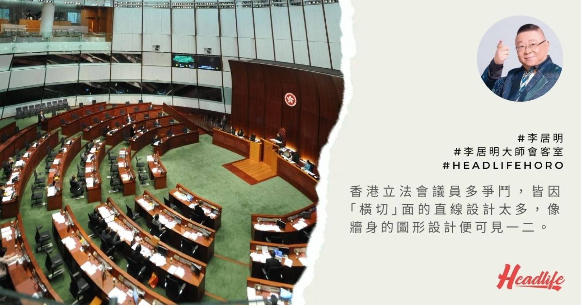 香港立法會裏面的設計全部都是直線,而沒有圓形、圓圈的圖案,這是整個立法會之所以爭拗和出事的真正原因。