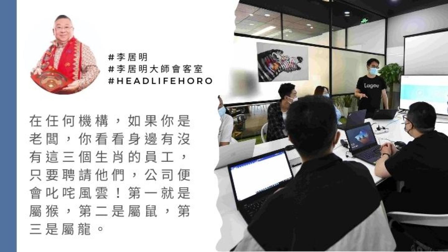 所以,要特別留意屬猴、屬老鼠和屬龍的人,其實都會為你而叱咤風雲。通常要令一家公司騰飛,就一定要有屬這三個生肖的人!這三個生肖都是非常好命,給人很大助力!