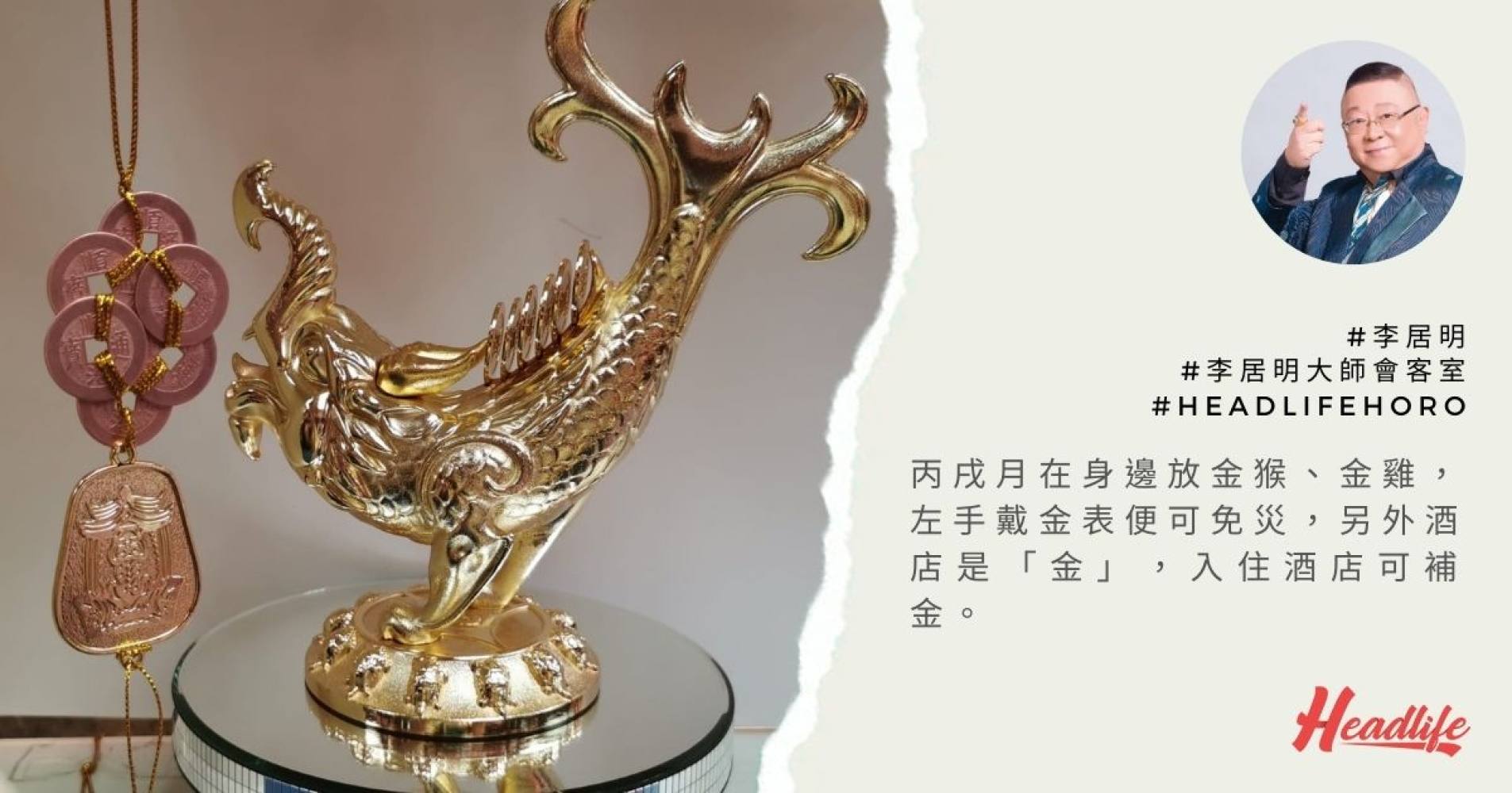 天機這東西很有趣,說出來了就未必會很大件事,因為你不留意時,那件事才會發生。天機揭露後,事情不會那麽嚴重,上天不會讓你說中。洩露天機的術家要承受風險,所以通常要有點宗教信仰才可以化解這風險。而且說了天機後,一定要說如何解決那事情!丙戌月在身邊放金猴、金雞,左手戴金表便可免災。