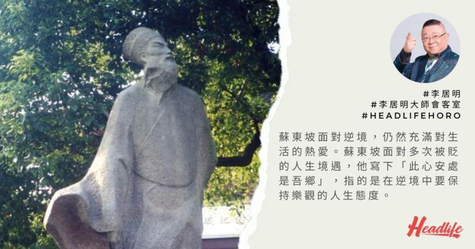 蘇東坡面對逆境,仍然充滿對生活的熱愛。蘇東坡面對多次被貶的人生境遇,他寫下「此心安處是吾鄉」,指的是在逆境中要保持樂觀的人生態度。這就是《情話蘇東坡》的人生哲理:「人心所安,便是歸處」,此劇在我的官網www.likuiming.com可以免費收看,會令你心安很多!