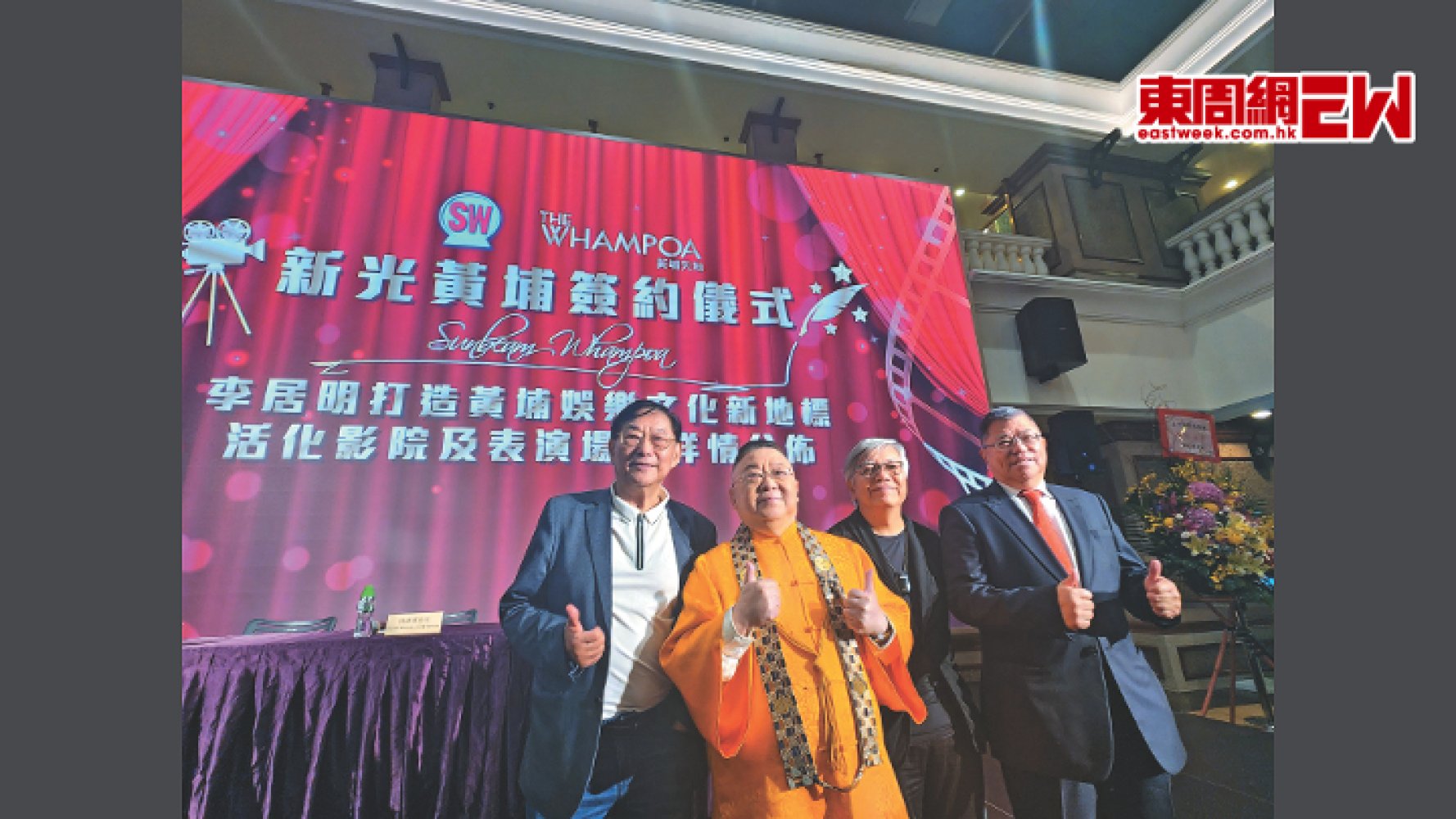 「新光黃埔」成功簽約進駐黃埔天地,活化四間戲院變成歌壇和小紅館,打造黃埔電影娛樂文化新地標,並成立電影宣傳發展基金,資深電影人吳思遠、田啟文出席記者會。