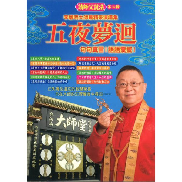 充滿李居明大師生活智慧的網路節目《五夜夢迴》,伴隨多少大師FANS夢回縈繞,這個網路節目,製作成首張精華CD,大師充滿神秘力量的宇宙聲音,在你的耳膜最深處放射最好運磁場,攻陷都市人生活的分分秒秒,聲聲入耳,句句入心,不可抗拒,怎可錯過?!