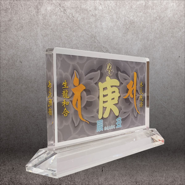 大師首創防疫吉祥物!大師根據子平術數「庚」「辰」「丑」乃降伏瘟疫之密碼,設計此防疫枱座,並加以密宗梵文種子字加持五行「金」與「水」,化解瘟疫「火熔金」之火毒,散熱有功,可保健康平安,乃疫情期間公司、家居、店舖及外出旅遊時,必備之傍身吉祥物!