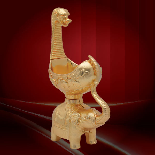 此物以吸財長頸獸配合吸財象,放在窗邊招財納富的威力驚人,底座為象之外,獸身亦刻有象,姿態都是吸水,水為財,吸水即吸財也!