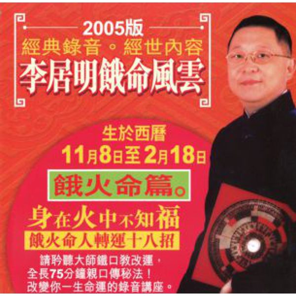 李居明大師的「餓命改運學」現場傳授,其錄音直播四場〈餓木命〉、〈餓火命〉、〈餓金命〉、〈餓水命〉徇眾要求,今年首度推出。讀者只要根據自己西曆出生日期,便可知道自己餓命的五行為何?只要根據大師的意見,注意家居生活及所有改運資料,即可扭轉人生!