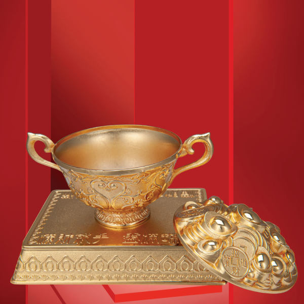 ○在金飯碗中放首飾、錢幣當作「財餌」!